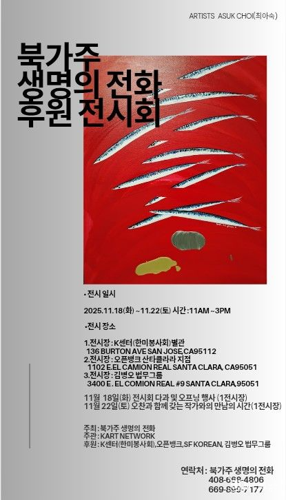 북가주 생명의 전화 김병오 이사장은 “이번 전시는 단순한 미술 감상이 아닌, 생명의 존엄성과 공동체의 가치를 되새기는 기회”라며 “소외된 이웃들과 고통을 나누고 공감하는 감사의 자리가 되길 바란다”고 전했다.