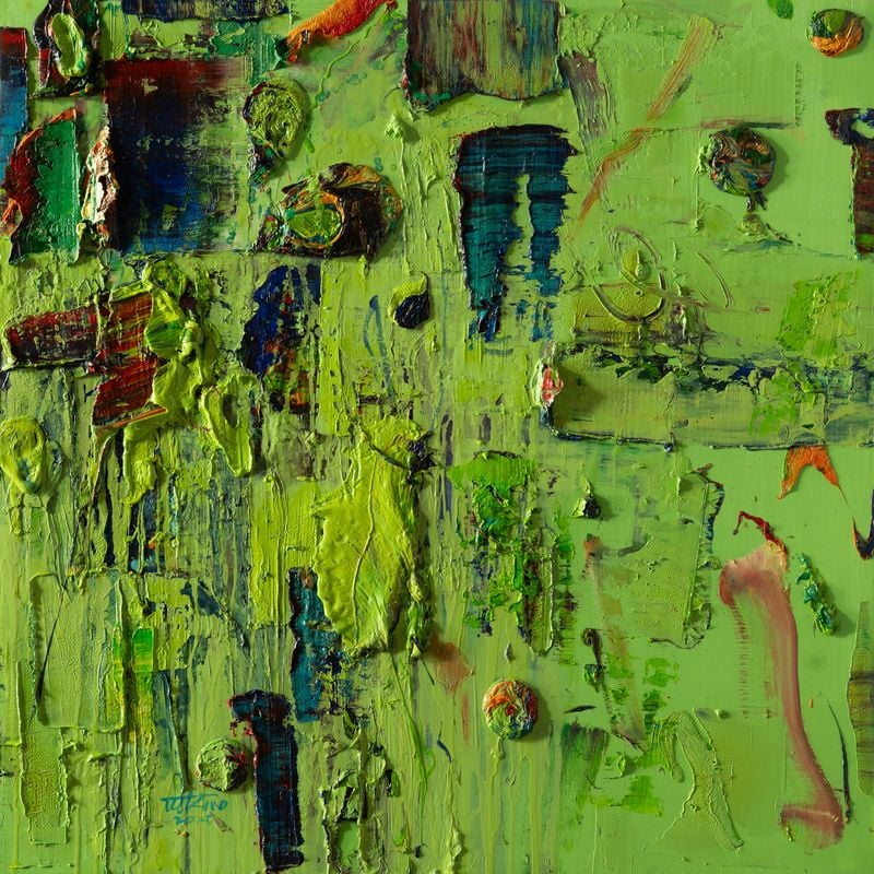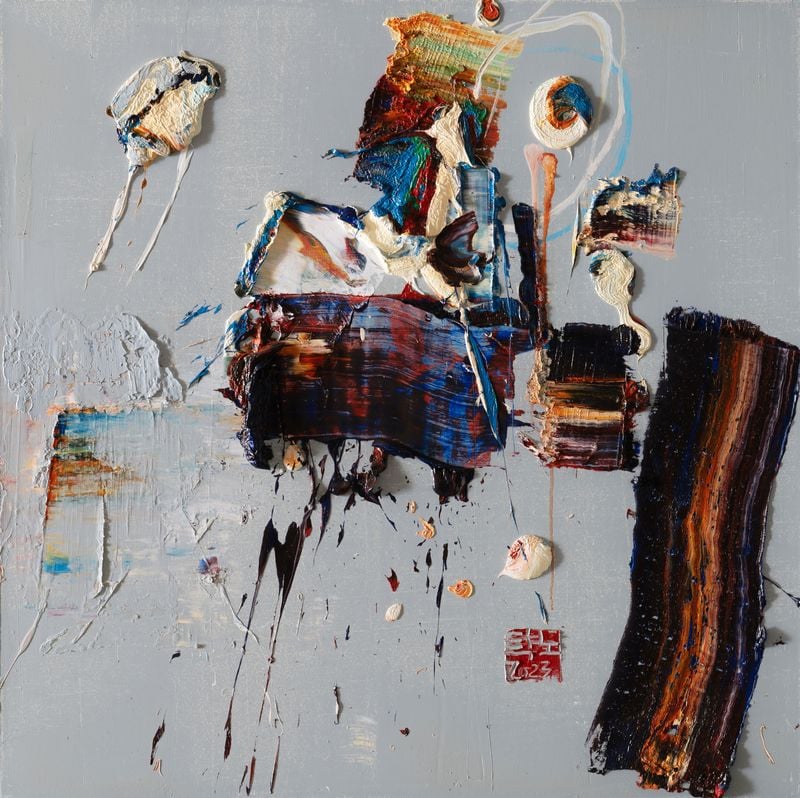 작업 방식 또한 강렬하다. 캔버스 위 밑그림(스케치)을 거의 두지 않고, 머릿속에 떠올린 형상과 색을 바탕으로 오일 물감을 두텁게 쌓아 올린 뒤, 큰 주걱으로 모아 캔버스에 힘껏 던지는 방식으로 ‘꾸미지 않은 야성’을 구현해 왔다.