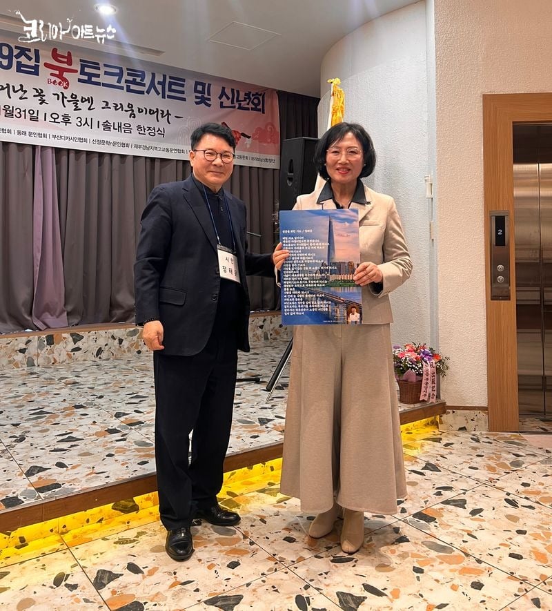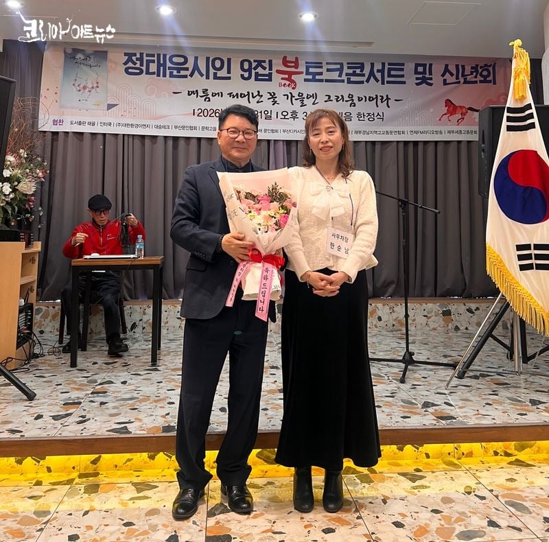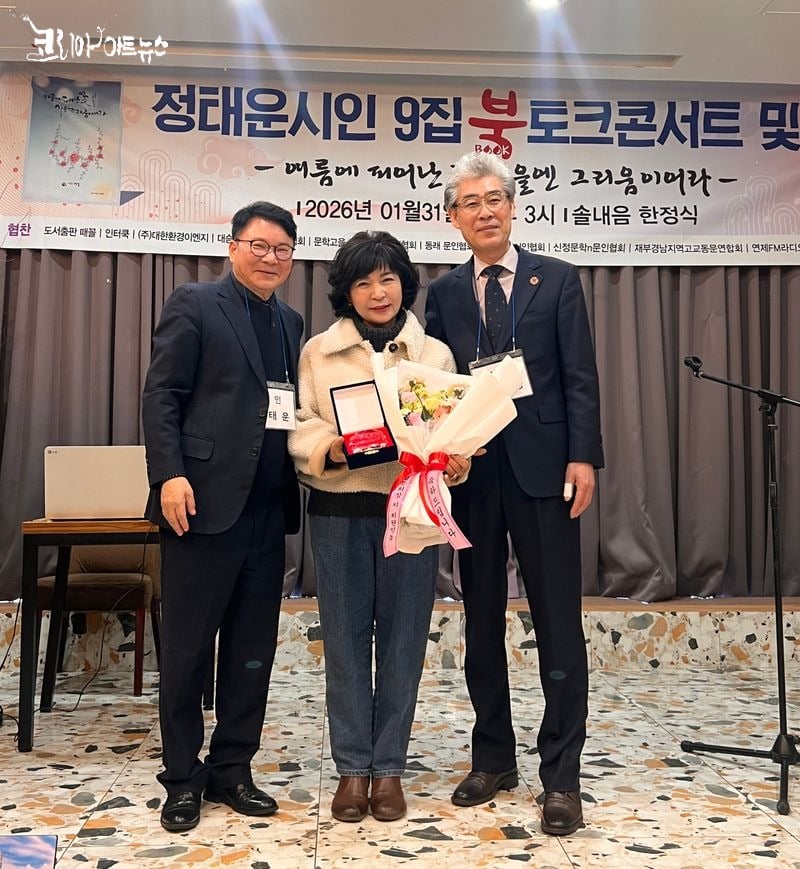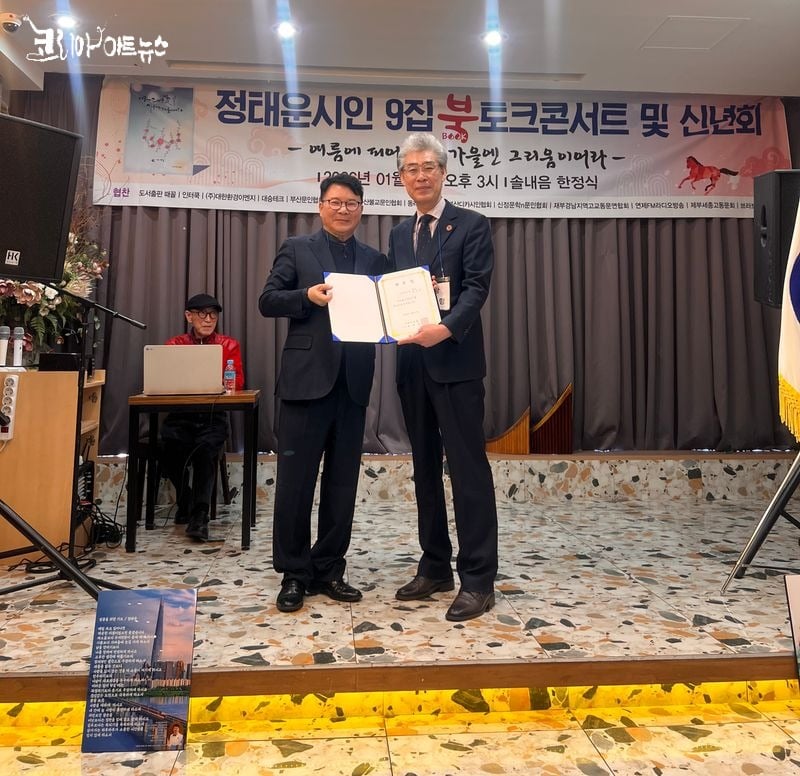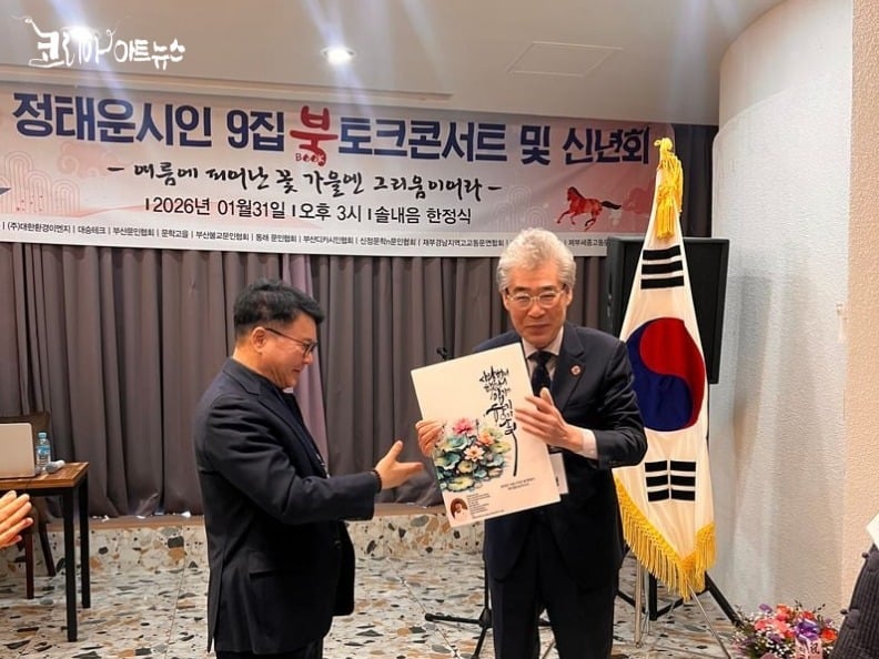 [문학=코리아아트뉴스 이청강 기자] 지난 1월 31일 오후 3시, 서면 솔내음 한정식에서 정태운 시인의 아홉 번째 시집 『여름에 피어난 꽃 가을엔 그리움이어라』 출간(도서출판 때꼴)을 기념하는 북토크 콘서트 및 신년회가 성황리에 마쳤다.