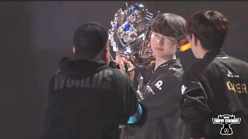 이날 T1 는 5차전까지 가는 접전 끝에 3-2 스코어로 우승했다. 페이커 선수는 팀 동료와 우승의기쁨을 누렸다.