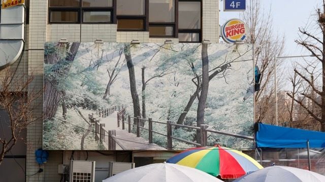 김윤호는 사진과 영상을 중심으로 한 시각매체 작업을 통해, 동시대 이미지가 개인과 사회 안에서 어떻게 소비되고 받아들여지는지를 꾸준히 탐구해왔다. 이번에 공개되는 ‘TOPIA’ 시리즈는 도시의 건물 외벽이나 공사 가림막에 부착된 자연 풍경 이미지에서 출발한다. 작가는 도시가 거친 표면을 정돈하거나 완화하기 위해 차용한 이러한 풍경이 실제 자연이라기보다, 도시의 물질적 표면 위에 덧입혀진 또 하나의 이미지 층위라고 바라본다.