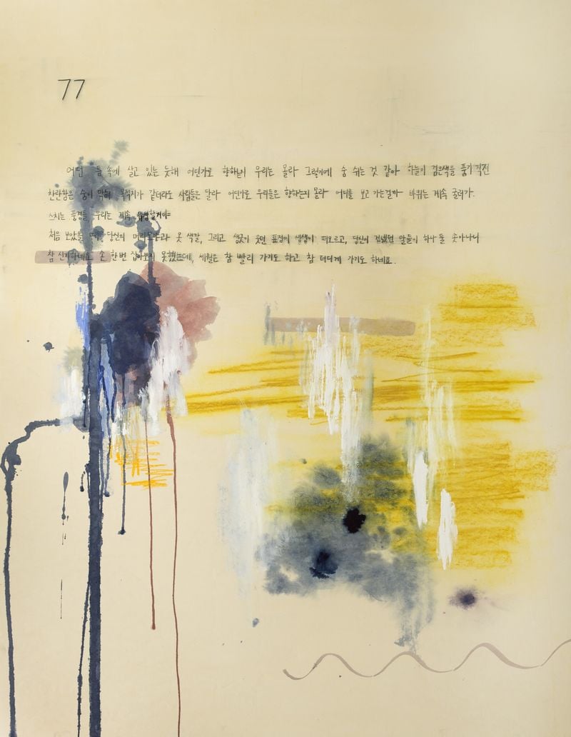 또한, 전다빈 작가(이화여대 동양화 박사과정)는 문학과 미술의 경계를 허물며 언어로 설명할 수 없는 세계를 탐험한다. 이미지와 텍스트가 충돌하고 해체되는 순간, 인간의 욕망과 모순이 드러난다. 파랑의 궤도 속에서 예술은 결국 한 편의 ‘인간의 소설’이 된다.