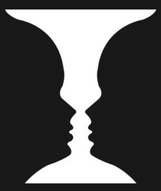 루빈의 컵 그림을 모르는 사람은 없으리라. 심리학에서 자주 쓰는 그림으로 인간의 지각과 착시를 설명할 때 자료로 주로 사용된다. 명확한 흑백 대비를 이룬 가운데 사람에 따라 전혀 다른 모습을 본다. 검은 부분 중심으로 보면 두 사람이 마주 보는 옆얼굴의 형상인데 하얀 부분에 주목하면 위가 넓고 손잡이가 잘록한 술잔의 모습이다.