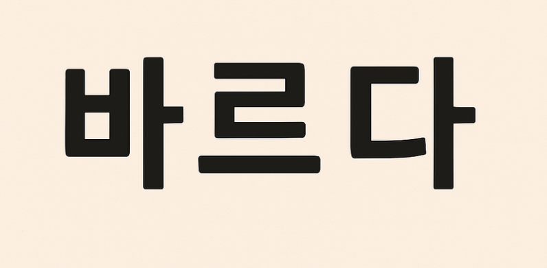 ♤바르다 : 비뚤어지거나 구부러지지 않도록 바르게 하다.