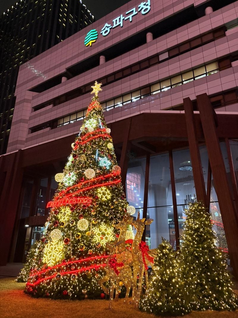 송파구청 앞 크리스마스트리는 주변 명소들과 자연스럽게 이어지며 겨울철 송파의 야간 풍경을 더욱 풍성하게 만든다.