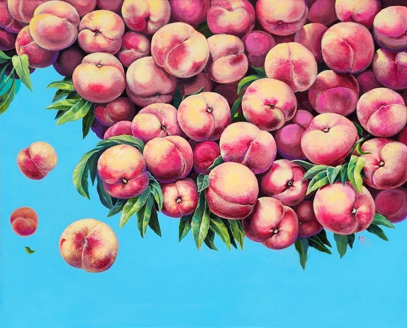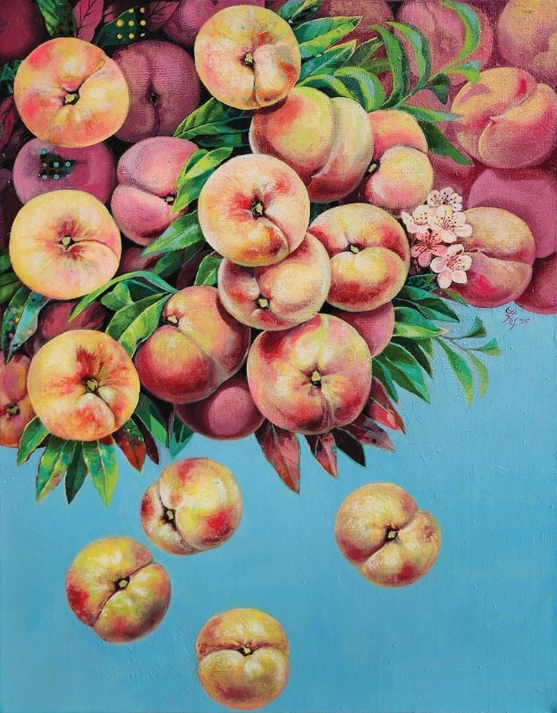박경희는 이른바 ‘복숭아 작가’로 불린다. 그의 작품 세계에서 복숭아는 단순한 과일이 아니라, 유년 시절의 행복한 기억을 소환하는 상징적 매개체다. 작가는 복숭아 과수원에서 보낸 어린 시절의 경험을 바탕으로, 평범하지만 가장 충만했던 삶의 순간들을 회화 안에 불러낸다. 오픈갤러리 큐레이터의 추천 글에 따르면, 작가에게 행복이란 거창한 사건이 아니라 걱정 없이 지냈던 어린 날의 일상과 같은 것이며, 복숭아는 바로 그 시간을 되돌아보게 하는 기억의 통로다.