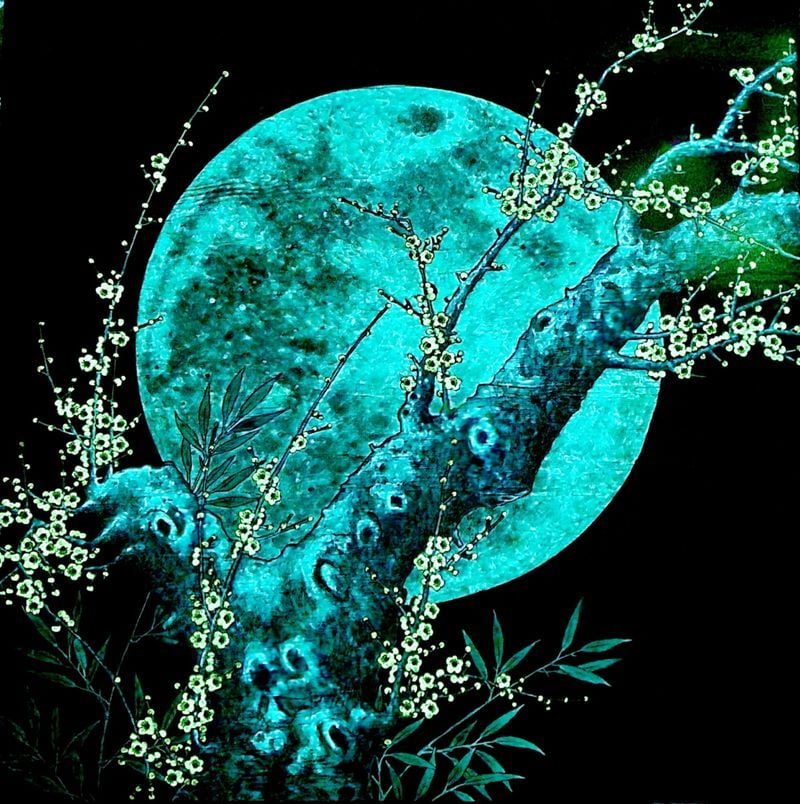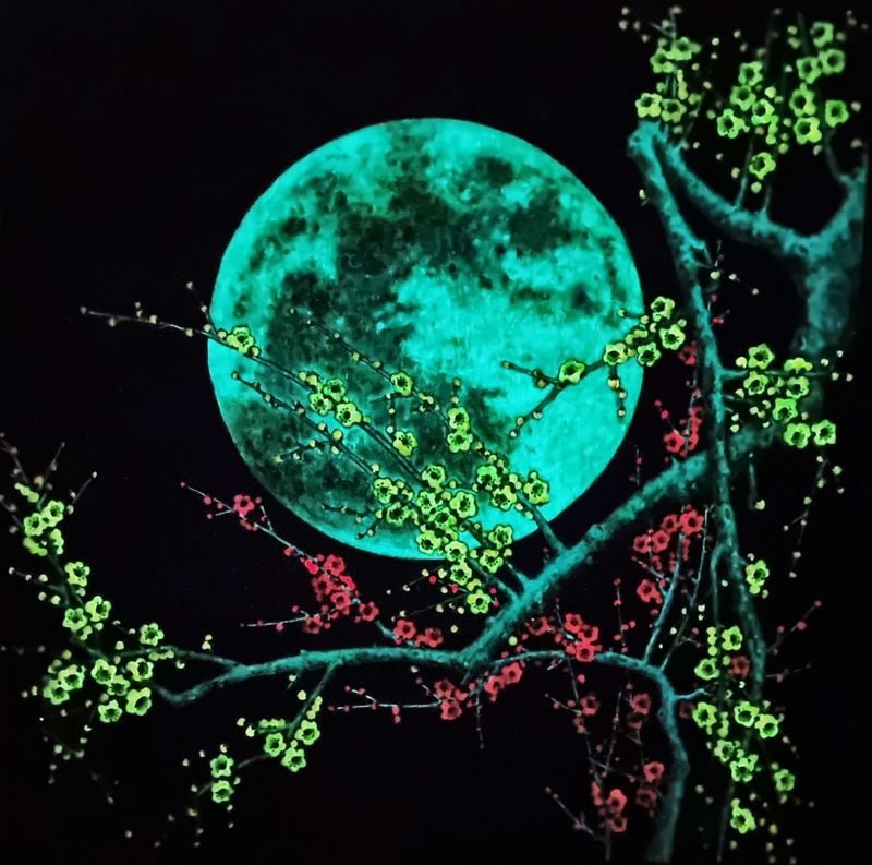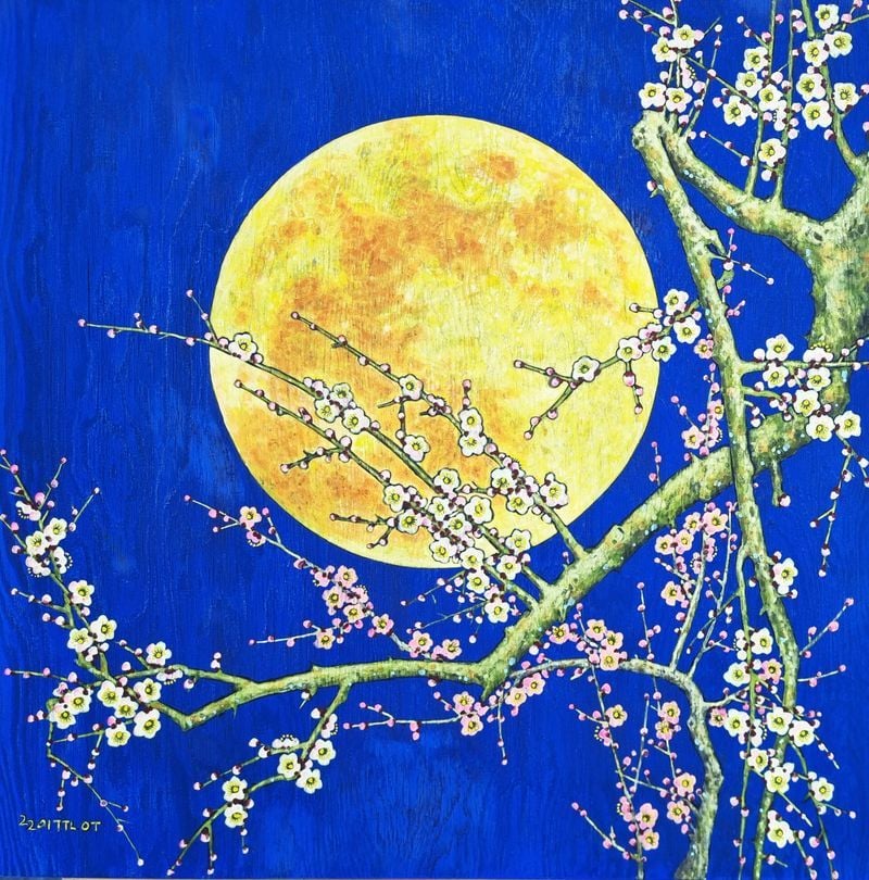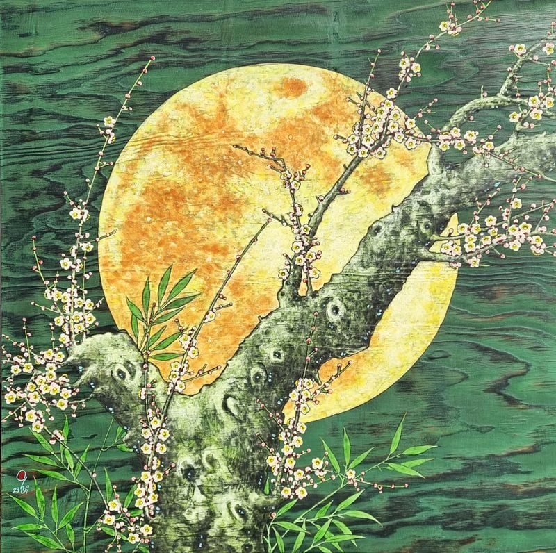 특히 작품의 핵심 모티브인 ‘매화’를 단순한 도상에 머물게 하지 않고, 태극·음양·오행의 질서를 연상시키는 구조와 가지·꽃의 흐름을 ‘조형 언어’로 확장하며 전통 상징을 새롭게 호출한다. 창호, 분청사기 등 조선의 공예적 기호가 배치되고, 안개·아지랑이를 연상시키는 분위기 속에서 ‘봄의 전령’ 매화의 향연이 펼쳐지는 등 고풍스러운 정서와 공간감이 돋보인다.