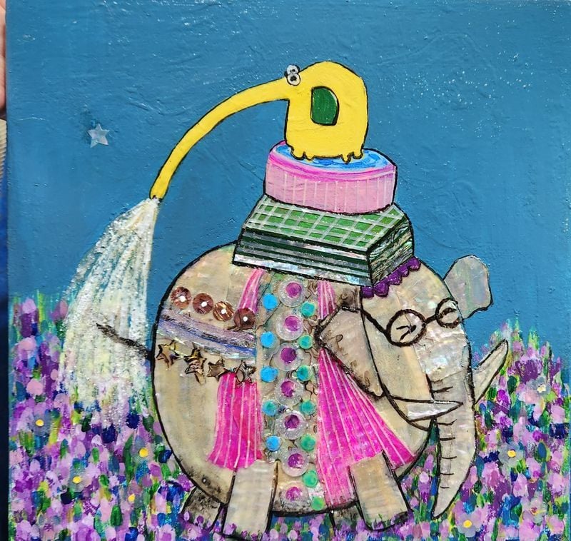 “I sought to express our inner worlds through the form of the elephant — a creature of brilliance, joy, and warmth. Each painting carries the personality, temperament, and color of a family member, weaving together harmony, togetherness, and the simple happiness of being family.”