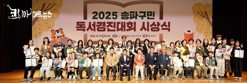 [송파=코리아아트뉴스 이청강 기자] 서울 송파구(구청장 서강석)가 지난 21일 구청 대강당에서 ‘2025년 송파구민 독서경진대회’ 우수작 39점을 선정하고 시상식을 개최했다고 알렸다.