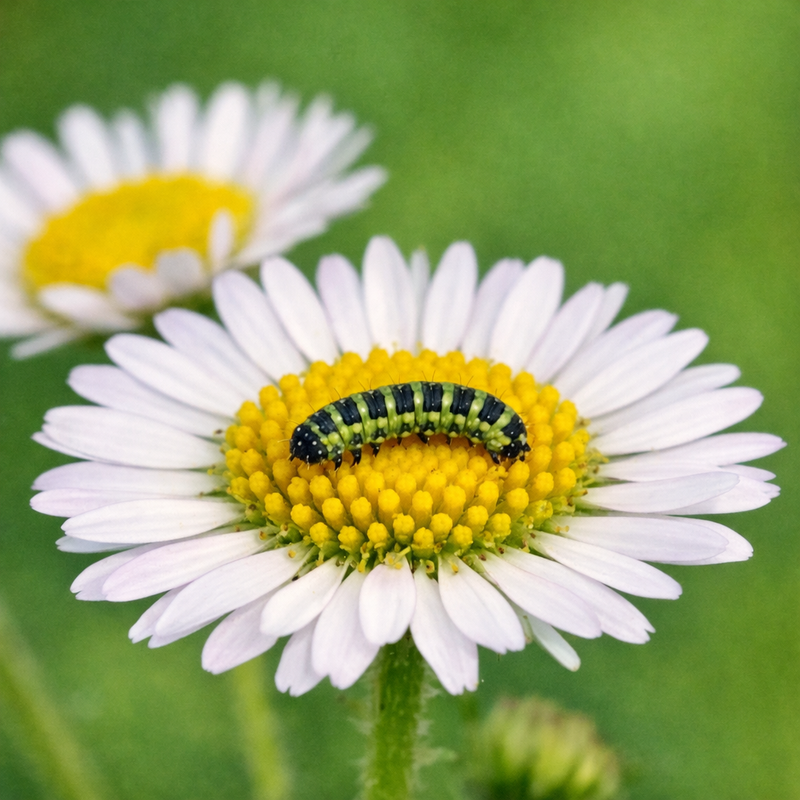 둘째 수에서는 시상이 전환되며 애벌레의 구체적 형상이 부각 된다. 초장에서“탱자나무 울타리에 / 허물 한 짐 벗어놓고”라는 구절은 탈피의 이미지를 통해 과거 자아를 내려놓는 결단을 상징한다. 탱자나무의 가시는 고통과 제약을 의미하며, 그 울타리는 삶의 경계를 드러낸다. 이어 중장“나방으로 날고 싶어 / 잔잎마저 갉아먹는”에서 애벌레의 행위는 단순한 생존을 넘어 변모를 향한 절실한 욕망으로 읽힌다. 현재를 소진해야만 새로운 존재로 나아갈 수 있다는 점에서, 이 장면은 변화의 필연적 고통을 내포한다.