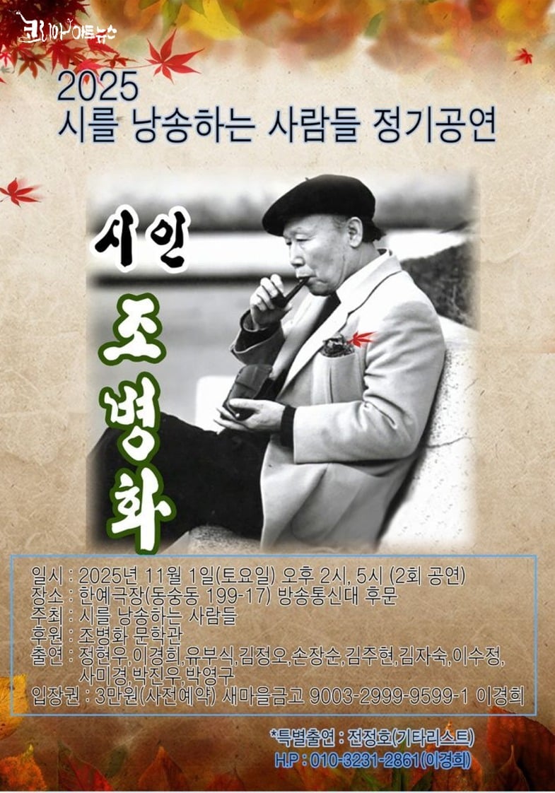 가을의 정취를 가장 깊이 품은 시인, 사랑과 고독을 노래한 조병화의 시가 무대 위에서 다시 살아난다. 오는 11월 1일(토) 오후 2시와 5시, 서울 종로구 동숭동 한예극장에서 ‘시를 낭송하는 사람들’의 정기공연이 열린다.