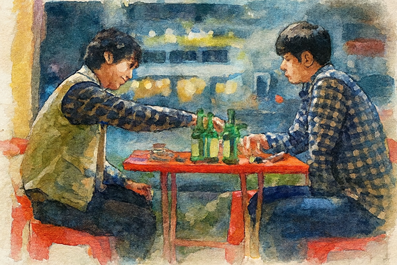 ‘흑백 요리사’ 시즌 2의 우승자 최강록이 ‘나를 위한 요리’로 최종전에서 우승할 때, 자기가 만든 요리 옆에 쏘주 한 병을 둔 것이 참 인상적이었다. ‘척해온’ 나를 반성하고 나를 위로하고 싶었다고 한다. 술꾼은 아니지만 감히 말할 수 있다. 쏘주는 혼자 마시는 것이다. 나를 위해 마시는 것이다. 눈물방울이 뺨을 타고 내려와 뚝, 뚝, 쏘줏잔에 떨어지면 그 술맛은 지상에서 가장 달콤한 맛이리라.