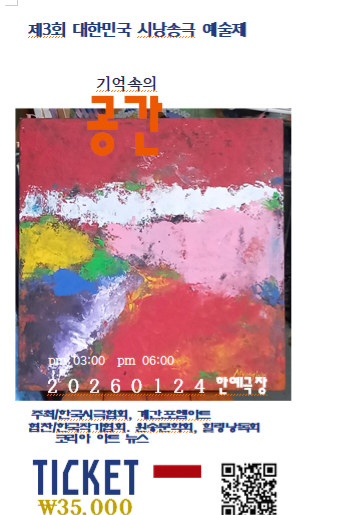 본보 코리아아트뉴스(KAN)가 협찬하는 "제3회 대한민국 시낭송극 예술제 '기억속의 공간' " 는 병오년 2026년 1월 24일 토요일 오후 3시와 오후 6시(2회 공연), 서울 대학로 한예극장에서 개최를 앞두고 총 리허설을 준비하고 있다.