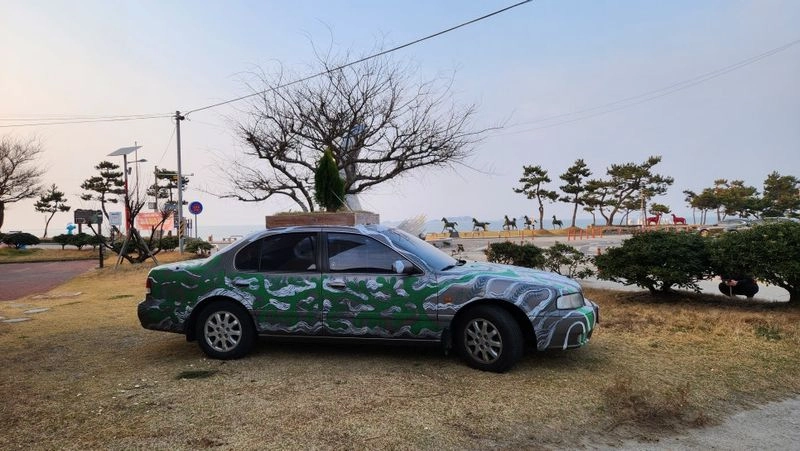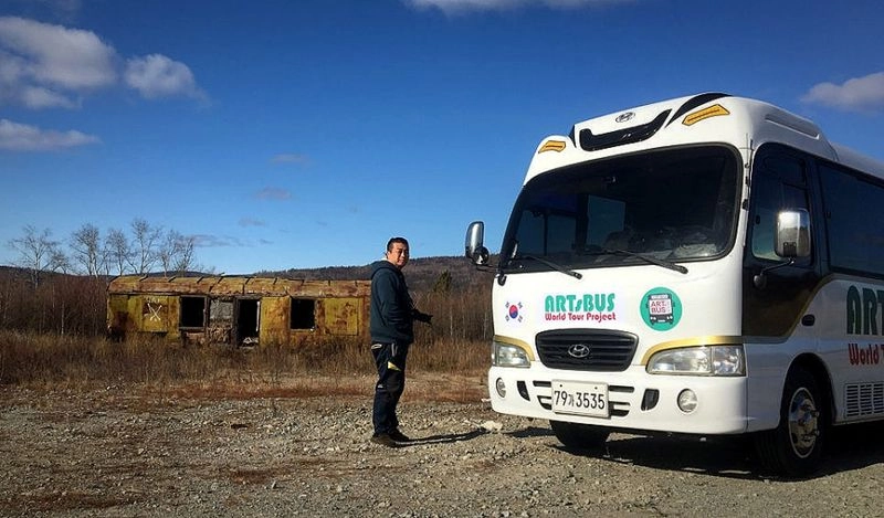 2019년 시베리아에서 진행된 ‘ARTsBUS 월드 투어’ 사진과 2025년 개인전 ‘Messenger_on the Road_경계를 넘는 그림자’, 자동차 내부 설치 작업 ‘Messenger_멸종의 시작’, 2022년 밀양아리랑아트센터에서의 라이브 퍼포먼스 장면, 그리고 성백 작가 사진이 함께 실려 있어 그의 작업이 퍼포먼스와 설치, 이동형 프로젝트, 전시 공간을 넘나들며 확장돼 왔음을 시각적으로 보여준다.