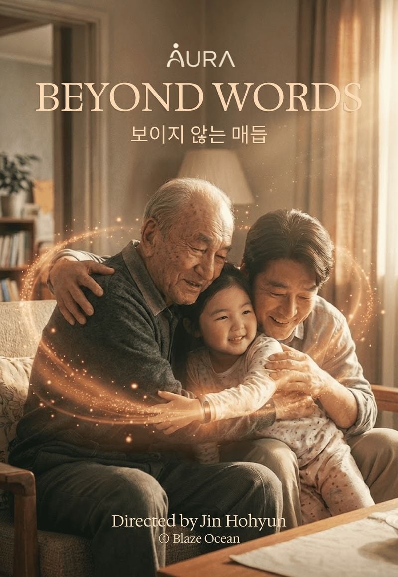 「아우라(AURA)」는 사용자의 감정 파동을 감지해 빛의 입자로 변환해 주는 가상의 AI 웨어러블 디바이스를 소재로 한 60초 분량의 광고 필름이다. 영상은 한국 사회의 고질적인 문제인 세대 간 소통 단절과 고독을 조명하며, 기술이 인간의 영혼을 어떻게 '아우를(Embrace)' 수 있는지에 대한 희망적인 메시지를 담았다.