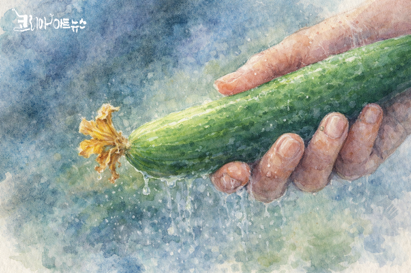 오이를 씻는다. 오이꽃 하나가 떨어진다. 손에 받아 쥐고 흐르는 물줄기 아래 한참을 망설인다.