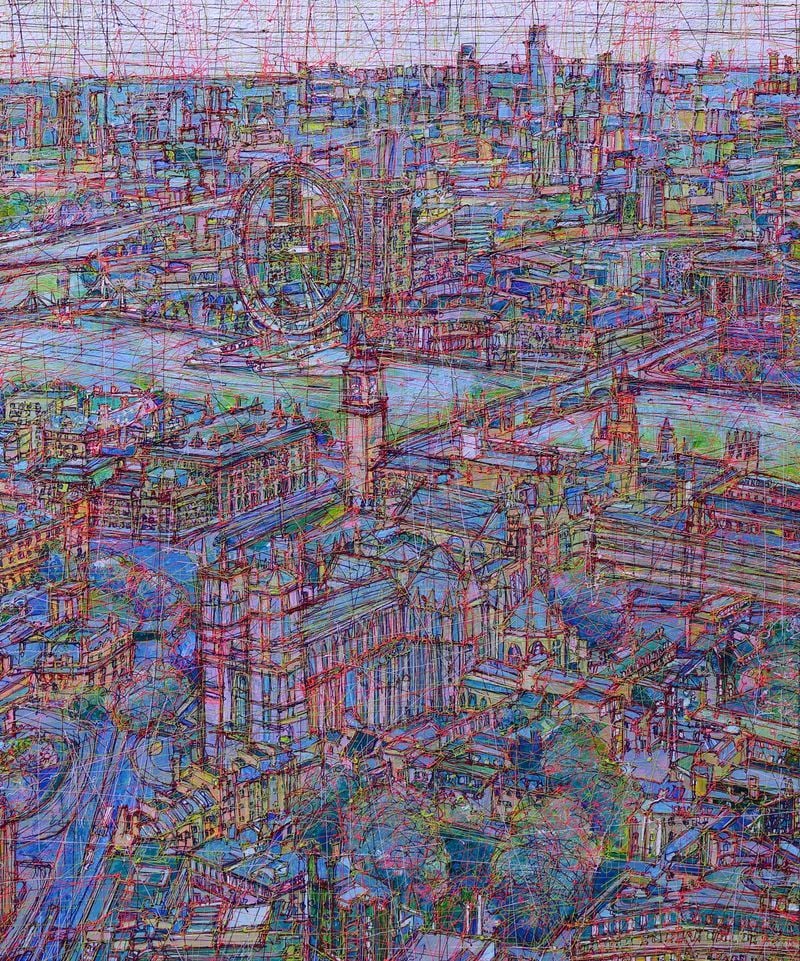 이번 전시는 도시 풍경을 주요 모티프로 삼아, 색과 선을 통해 시간·기억·감정의 축적을 탐구해 온 김란의 작업 세계를 집중 조명한다. 멀리서 보면 구조적으로 조직된 도시 전경이 펼쳐지고, 가까이 다가갈수록 무수히 겹쳐진 선의 레이어가 만들어내는 밀도와 리듬이 감각을 자극한다. 작품 속 도시는 코로나 시기 전국을 오가며 마주한 랜드마크·경험과 기억의 층위를 거치며 재구성된다.