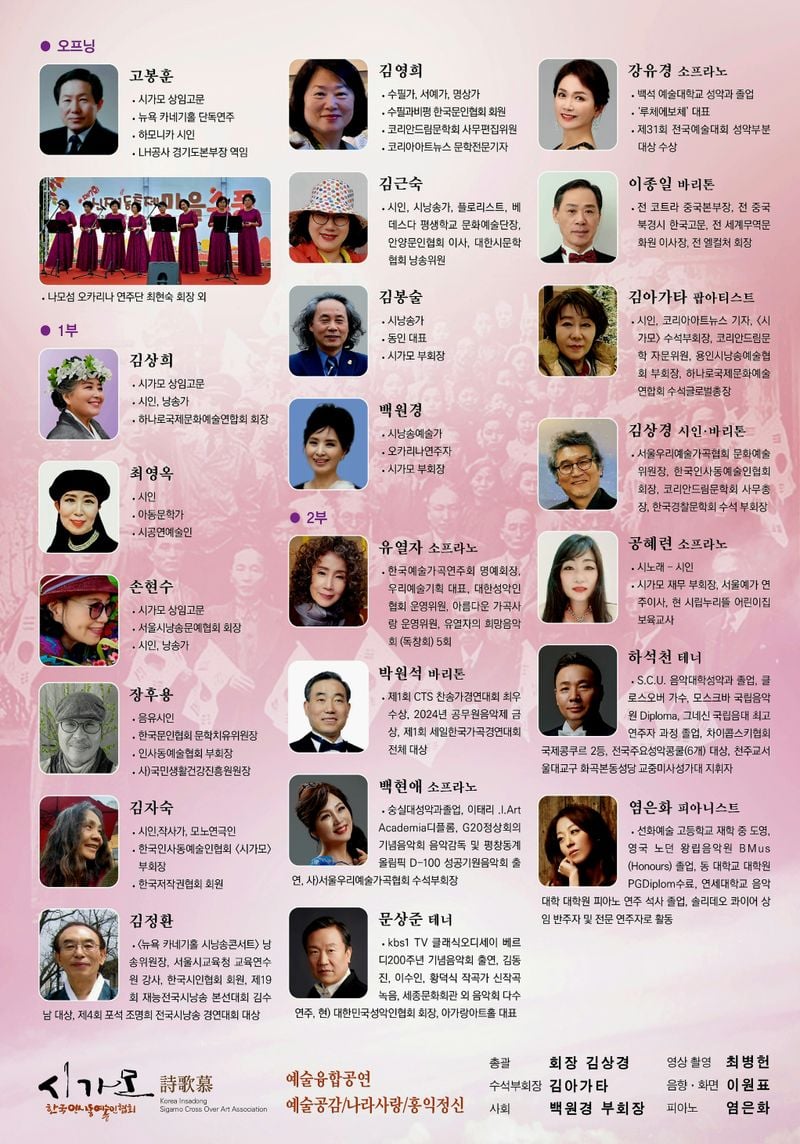 본보 KAN 팜가수 김아가타 기자와 문학전문기자 김영희 수필가가 참여하는 이번 행사는 시가모(한국인사동예술인협회) 창립 10주년을 기념하는 뜻깊은 자리로, 예술을 통해 나라사랑의 정신을 나누고자 마련됐다.