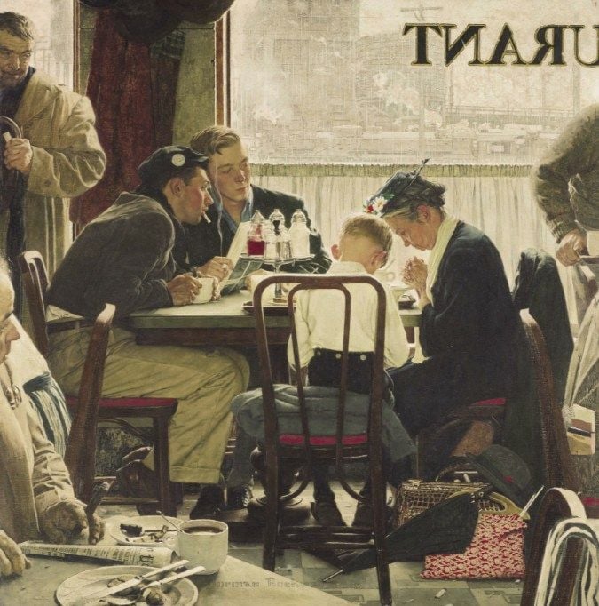 이 작품은 노먼 록웰이 그린 "식사 기도" (Saying Grace)이다. 록웰의 그림 중 가장 감동적이고 가장 잘 알려져 있는 것으로 비평가들이 록웰의 그림 중 가장 걸작으로 평가하는 그림이다. 이 그림은 2013년 소더비 경매에서 4,600만 달러라는 엄청난 가격에 판매되어 당시 미국 미술품 경매 사상 최고가를 기록하기도 했다. .