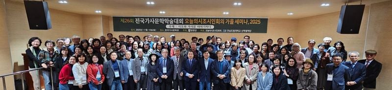 [담양=코리아아트뉴스 김강호 기자] 가을빛이 깊어진 11월 중순, 전남 담양은 시와 학문이 어우러진 특별한 시간 속으로 들어섰다. 15일부터 16일까지 이틀간, 한국가사문학관에서는 제26회 전국가사문학학술대회와 오늘의시조시인회의 가을 세미나가 열려, 시조와 가사문학을 사랑하는 200여 명의 시인과 학자들이 한자리에 모였다.