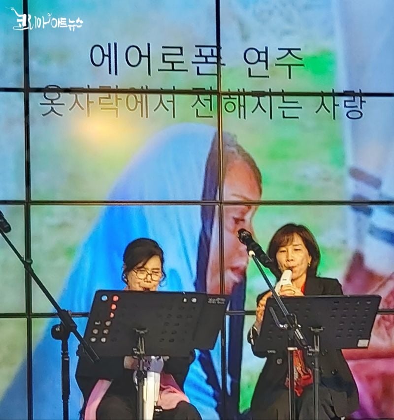 시 노래와 낭송이 이어지는 가운데, 「서시」, 「숨어 우는 바람소리」, 「선구자」 등 윤동주 시인의 작품과 그 정신을 담은 곡들이 무대에 올랐고, 김현수, 박희정, 김은주, 박형도, 이원옥 등 시인들이 다양한 작품을 낭송하며 윤동주의 시 세계를 다채롭게 풀어냈다. 정순옥 교수와 하인숙의 에어로폰 연주는 「혼자가 아닌 나」, 「10월의 어느 멋진 날에」 등 감성적인 곡들로 음악적 깊이를 더했다.