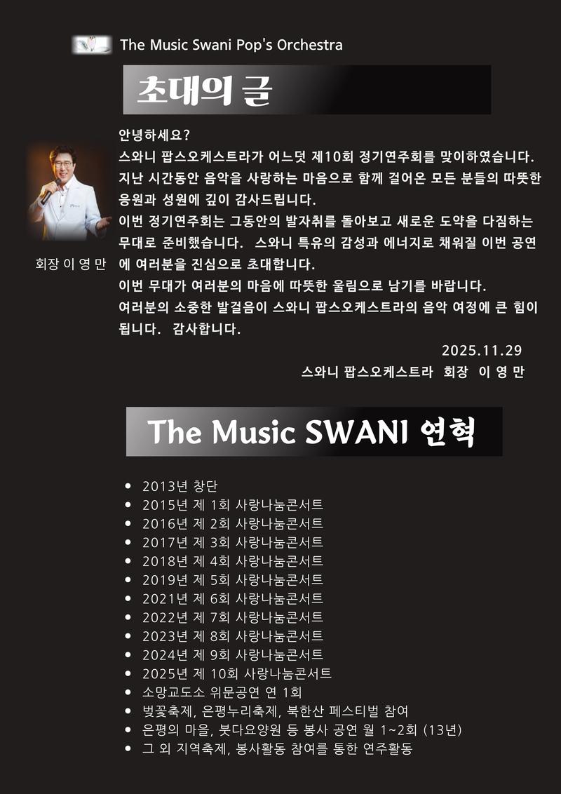 스와니 팝스오케스트라 회장 이영만, "스와니 특유의 감성과 에너지로 채워질 본 공연에 초대합니다"