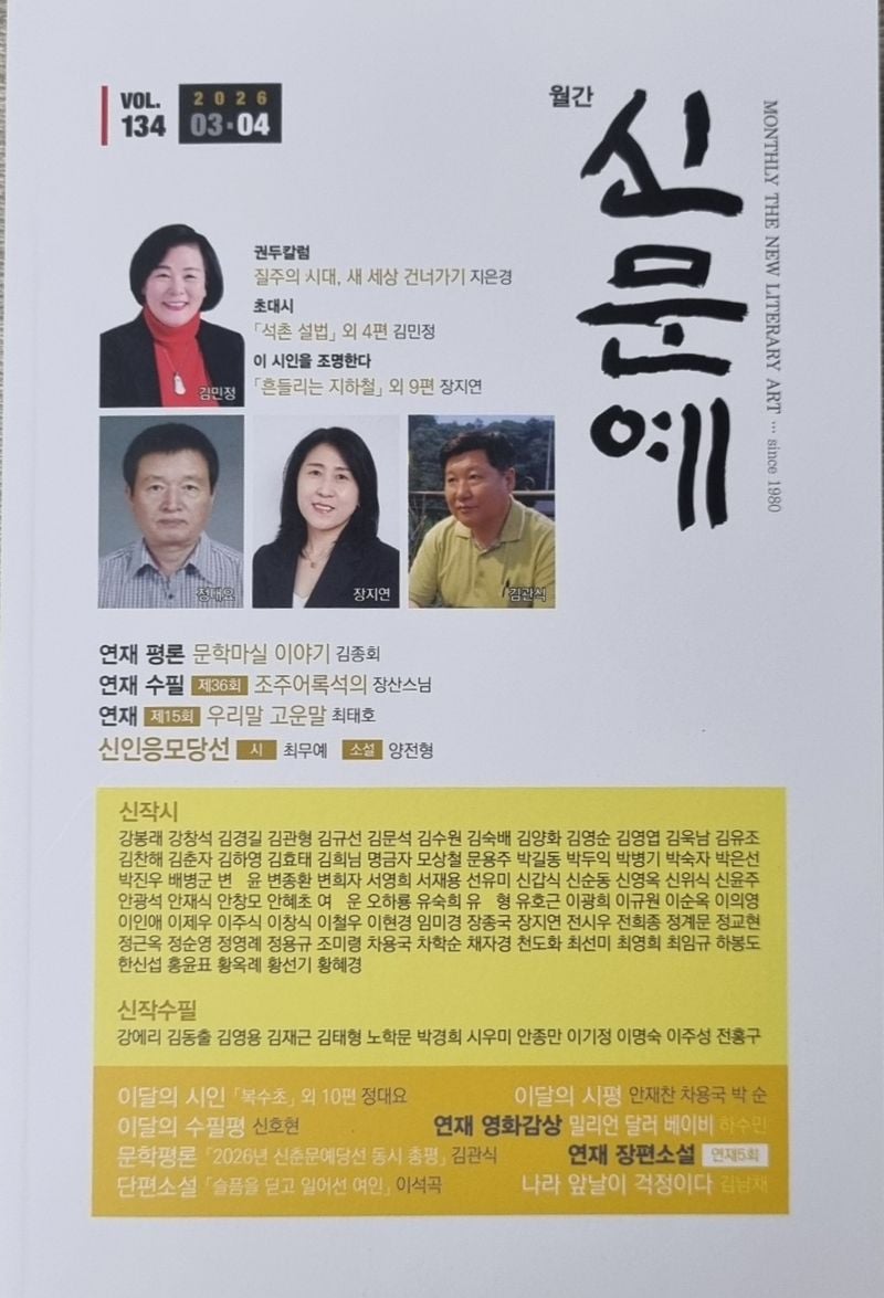 [KAN]장지연 시인, 월간 신문예 VOL 134 2026 3,4월호 대표시 <흔들리는 지하철> 외 9편 수록
