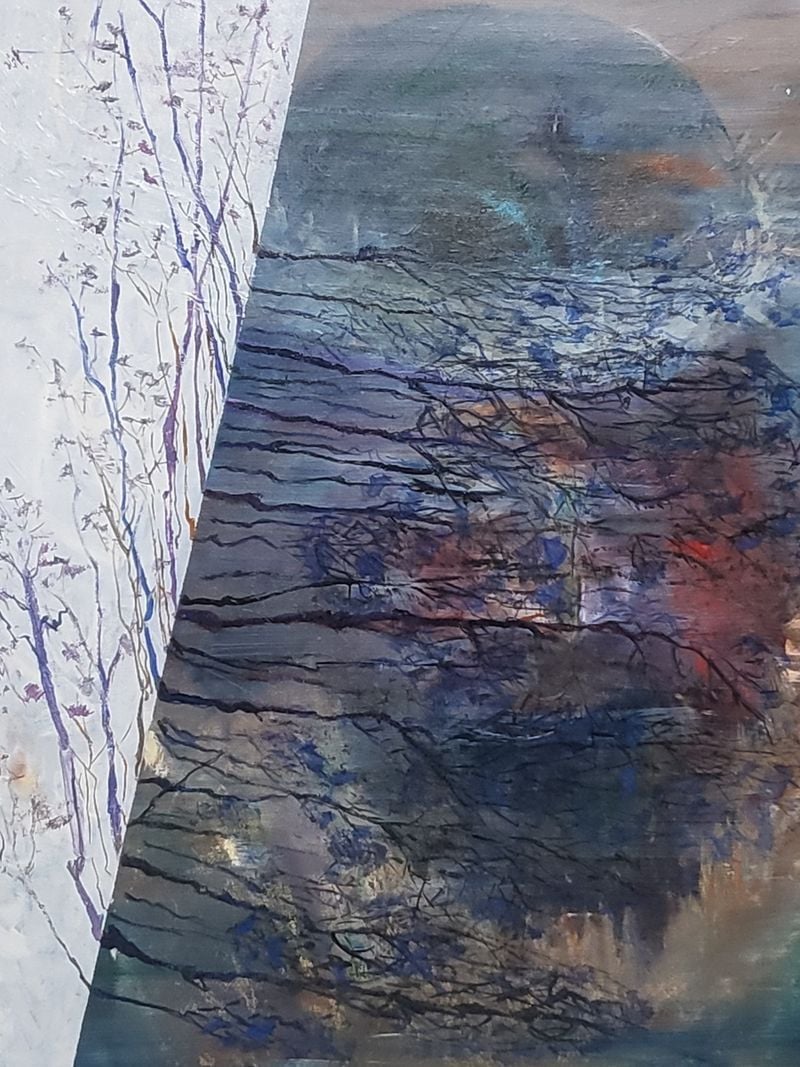 이종희의 회화는 감정을 과장하지 않는다. 대신 색과 질감, 번짐과 겹침을 통해 서서히 감각을 불러낸다. 푸른 계열의 화면에서는 차가운 공기와 고요한 사유가 감돌고, 회백색의 두터운 마티에르에서는 침묵과 기억이 천천히 모습을 드러낸다. 또 붉은빛이 짙게 깔린 화면에서는 시간의 농도와 삶의 흔적, 그리고 지나간 감정의 온도가 묵직하게 배어 나온다. 이처럼 작가의 풍경은 눈앞의 자연이라기보다 내면이 외부 풍경의 형식을 빌려 나타난 심리적 공간에 가깝다.