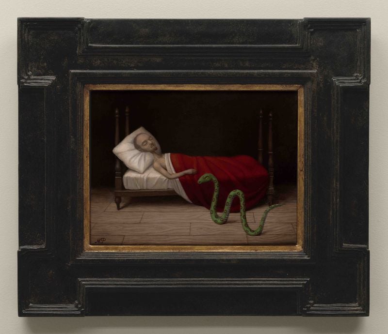 전시에서는 작은 목판 위에 그린 신작 유채화 21점이 공개된다. 정교한 묘사와 성스러운 분위기를 머금은 화면은 15~16세기 북유럽 르네상스 종교화를 연상시키며, 동시에 펙 특유의 몽환적이고 기이한 상상력을 드러낸다.