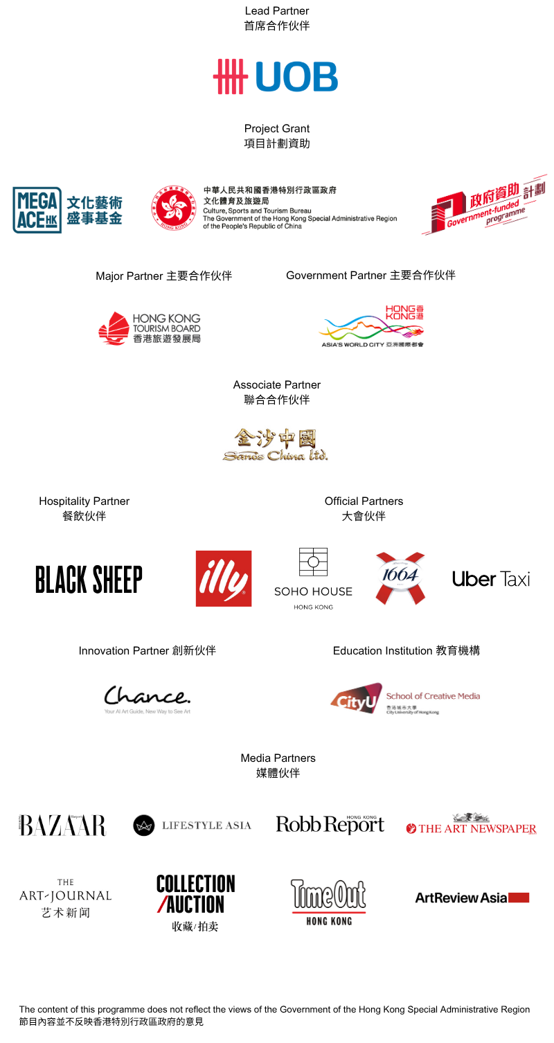 이번 행사는 UOB(United Overseas Bank)와의 파트너십 아래 진행되며, 방문객들은 전시 부스 관람뿐 아니라 다층적인 특별 프로그램을 함께 접할 수 있다. 공식 프로그램에는 센트럴 스테이지(Central Stage), Neo, Yi Tai Sculpture & Installation Projects, Hong Kong Artist Commission, Video Art, Performance, Talks 등이 포함돼 있어, 회화와 조각, 설치, 영상, 퍼포먼스, 담론 프로그램까지 폭넓게 아우르는 구성이 예고됐다.