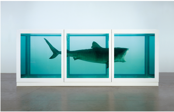 포름알데히드 용액이 담긴 유리 수조 안에 거대한 상어를 넣은 설치 작품이다. 금방이라도 관객을 덮칠 듯 생생한 모습으로 박제된 상어는 죽음의 공포를 직면하게 하면서 동시에 부패를 늦추고 영원히 보존하려는 불멸에 대한 욕망을 보여준다. 인간은 소멸에 대한 공포와 불안감을 안고 살아가지만, 한편으로는 자기 자신의 죽음은 그것이 닥치는 순간까지도 실감하지 못한다는 역설이 드러나는 작품이다.