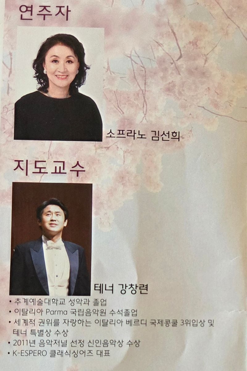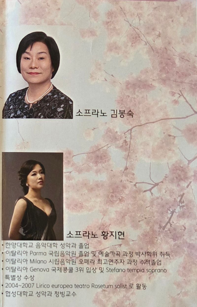 이번 공연은 소프라노 김선희와 김봉숙이 무대에 올라 풍성한 레퍼토리로 관객들에게 감동을 선사했다.