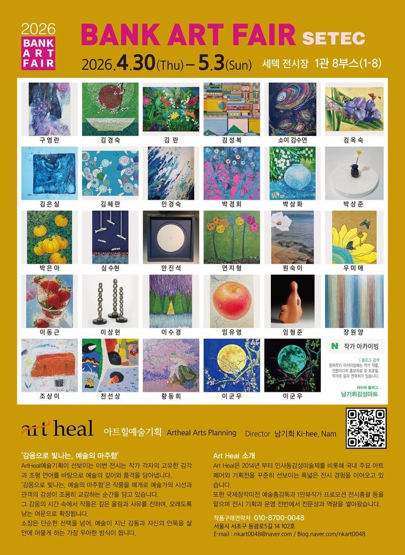 아트힐예술기획(Director 남기희)이 오는 4월 30일부터 5월 3일까지 서울 세텍(SETEC) 전시장에서 열리는 ‘2026 뱅크아트페어 세텍(BANK ART FAIR SETEC)’에 참가한다.