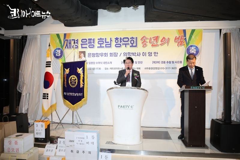 [사회=코리아아트뉴스 이청강 기자] 지난 12월 12일(금) 오후 5시, 서울 연신내역 매트로타워 4층 파티유 뷔페에서 2025 재경은평호남향우회 송년회가 회원과 은평구민들의 뜨거운 호응 속에 성황리에 마무리됐다.