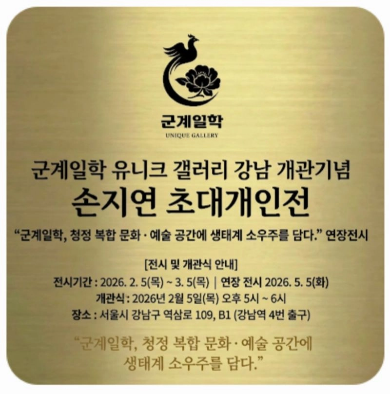 서울 강남 중심부 작가의 새로운 예술적 여정이자 숨결이 담긴 공간인 '군계일학 유니크(UNIQUE) 갤러리 강남점' 개관을 기념하여 지난 2월 5일부터 열린 손지연 초대 개인전이 고객들의 성원에 힘입어 5월 5일까지 연장전시를 한다고 밝혔다.
