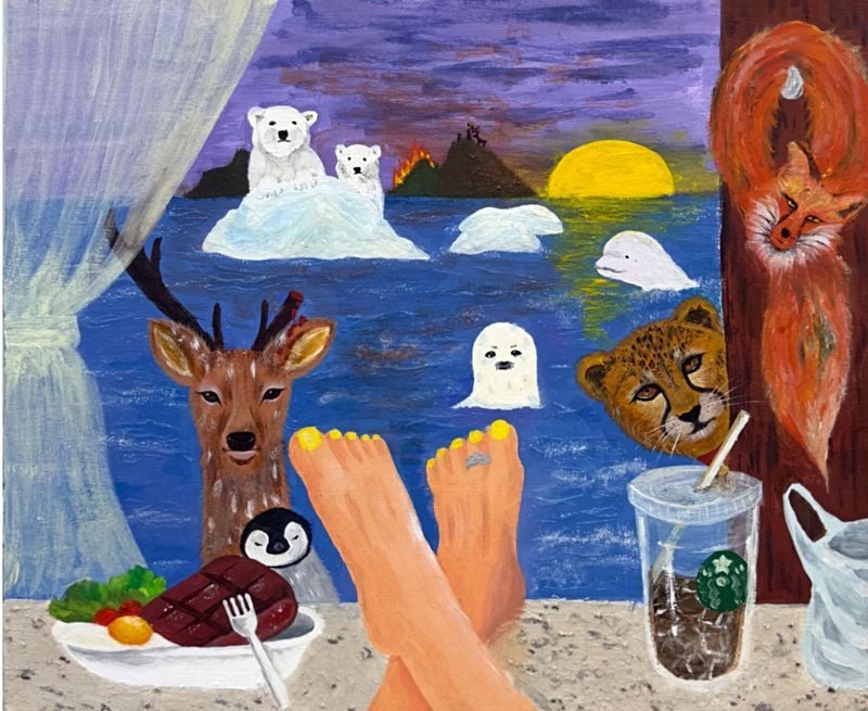 전시 작품들은 인류 문명의 발전 이면에 가려진 환경 오염과 생태 파괴, 그리고 그 과정에서 희생되는 생명에 주목한다. 인간의 편의와 욕망이 만들어낸 세계 속에서 자연과 동물이 어떤 침묵을 강요받아 왔는지를 상징적 이미지로 풀어내며, 인간과 자연의 문제를 분리하지 않고 결국 같은 질문 안에 놓인 존재로 제시한다.