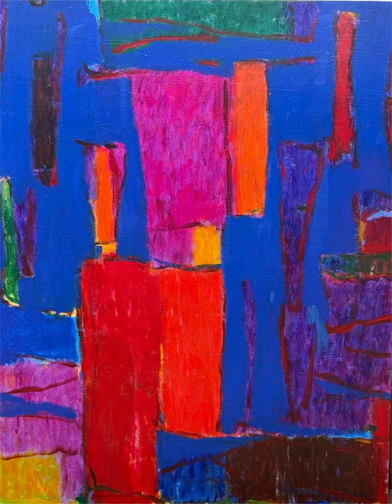 그녀의 화면은 단순한 추상이 아니다. 기억과 정서가 색으로 재구성된 시간의 구조이며, 조각보처럼 분할되고 이어지는 구성 속에서 하나의 리듬이 흐른다. 한국적 감각과 서구적 추상이 충돌하지 않고 물처럼 공존하며, 오방색(청·백·적·흑·황)이 내면의 색으로 등장한다. 특히 반복되는 붉은색은 어린 시절의 감각이 각인된 흔적이자 작가의 정체성을 드러내며, 감정과 의식의 확장을 상징한다.