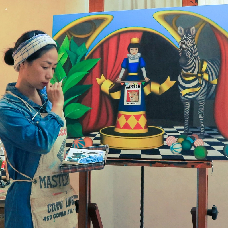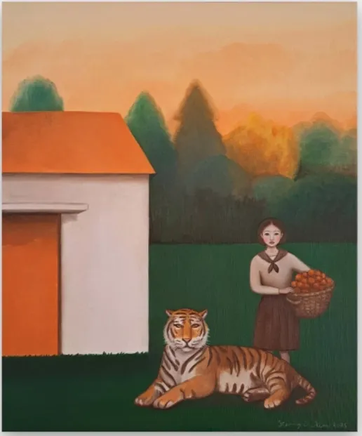 작가노트에서 김재이는 “피에로 소녀는 얼룩말이 되고 싶어 했고, 어린 해녀는 호랑이를 찾고 싶어 했다”는 은유적 표현을 통해 불확실한 미래 속에서도 포기하지 않는 삶의 의미를 강조한다. 그의 작품은 격정적인 색채로 인간 내면의 성장통을 표현하는 피에로 소녀 연작과, 절제된 색채와 고요함으로 제주 해녀의 삶을 담아낸 작품을 통해 도시와 섬, 격정과 서정 사이를 오가며 예술가로서의 정체성과 자유를 탐구한다.
