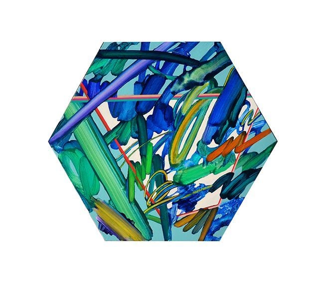 유정현(YOO Jung Hyun)은 Pataphysical Hexagons_13에서 육각형 포맷 안에 역동적인 색채와 선의 흐름을 압축해 보여준다. 52×60cm의 아크릴 회화는 화면의 구조성과 자율성이 긴장감 있게 공존하며, 작가 특유의 감각적인 조형 실험을 집약적으로 드러낸다.