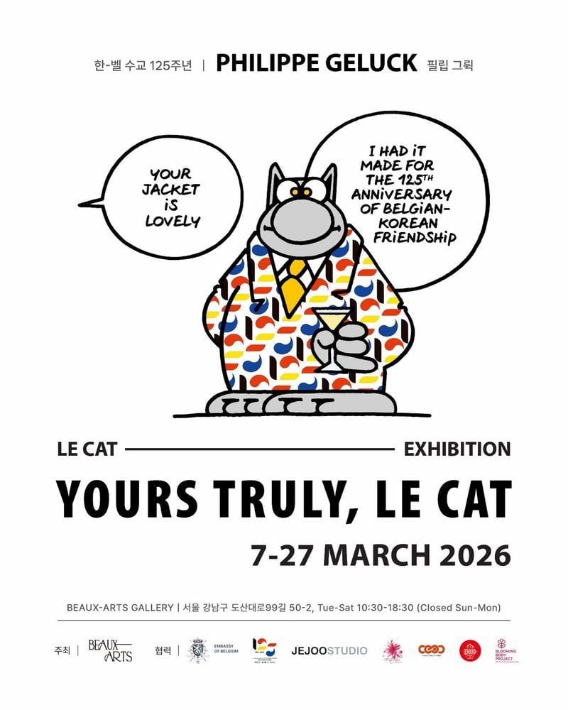 역사적인 명화들을 오마주하며 탄생한 그의 캐릭터 ‘르깟’은 단순한 그림을 넘어 벨기에의 문화적 자부심으로 자리 잡았다. 수많은 셀럽과 대중의 사랑을 받아온 이 고양이가 어떻게 전 세계적인 팬덤을 형성해 왔는지, 그 매혹적인 서사를 청담 보자르갤러리에서 직접 만나보길 바란다. 필립 그뤽이 전하는 ‘보는 즐거움’은 관람객에게 예술적 영감과 기분 좋은 웃음을 동시에 선사할 것이다.