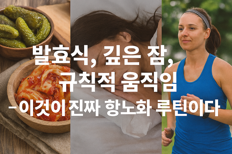 매일의 밥상에서 발효식과 제철 채소를 챙기고, 하루 한 번 땀이 날 정도의 운동을 하며, 밤에는 깊은 잠을 통해 성장호르몬이 오를 수 있게 돕는 것. 이 단순한 루틴이 수십 가지 약보다 훨씬 강력한 항노화 처방이 된다.