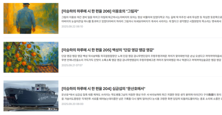 365일에 이른 이승하 시인의 기록은 단순한 연재물이 아니라 시와 독자가 매일 만나는 축제였다. 그의 꾸준한 헌신은 한국 문학의 새로운 가능성을 열어가고 있으며 앞으로도 더 많은 독자의 마음에 닿을 것이다. 코리아아트뉴스는 시인의 진심과 열정에 깊은 감사를 전하며, 이 아름다운 기록이 이어지기를 진심으로 소망한다.