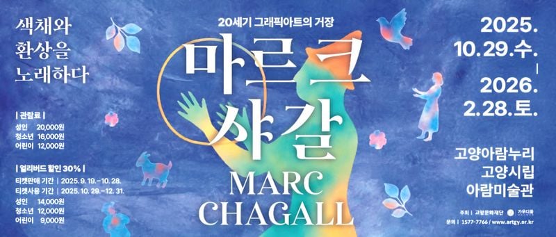 [문화예술=코리아아트뉴스 이청강 기자] 고양문화재단과 문화콘텐츠 전문기업 가우디움어소시에이츠가 공동으로 주최하는 '마르크 샤갈: 20세기 그래픽 아트의 거장, 환상과 색채를 노래하다' 전시회는 샤갈을 집중적으로 조망한다.