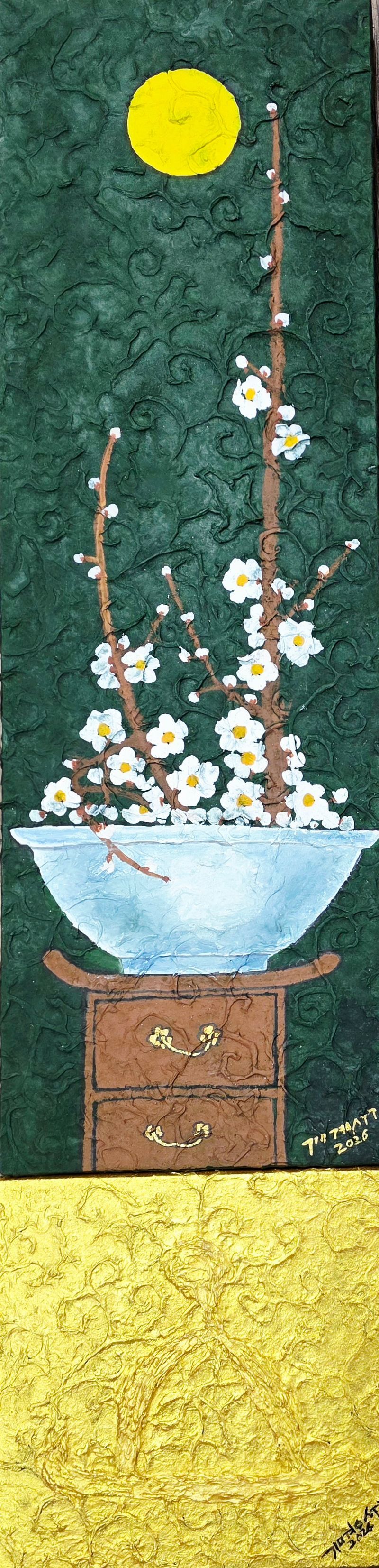 무엇보다 김경숙 작가의 작업은 ‘아름다움’에 머물지 않고 삶을 향한 염원을 담아낸다는 점에서 깊은 인상을 남긴다. 작가는 자신의 작품을 통해 “황금빛 대운과 풍요의 기도”, 그리고 “다시 꽃피우는 삶의 에너지”를 전하고자 한다고 밝히고 있다. 척박한 현실 속에서도 묵묵히 꽃을 틔우는 매화처럼, 그의 화면은 흔들리는 시대를 건너는 사람들에게 조용한 위로와 단단한 희망을 건넨다.