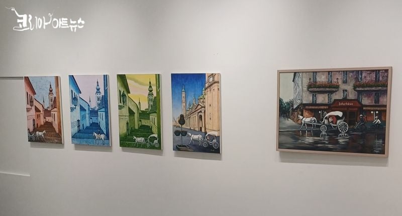 전시장에 들어서자 가장 먼저 눈에 띈 것은 〈여행가는 길〉 시리즈였다. 화면 속 풍경은 단순한 길이 아니라, 여행 중 느꼈던 햇살과 바람, 그리고 여유로움이 고스란히 담겨 있었다. 작가는 말했다.