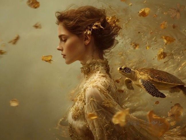 하늘로부터 쏟아지는 금빛 에너지는 우리 삶의 모든 성취와 풍요가 신성한 은총의 결과임을 의미하며, 단순한 긍정을 넘어 지속 가능한 번영과 압도적인 성공의 흐름을 공간으로 인도하는 예술적 축원이다. 화면 속을 유영하는 거북이는 삶의 지혜와 영원한 생명력을 상징하며, 작품 전체를 감싸는 찬란한 기운은 소장자의 삶에 위대한 결실이 끊임없이 이어지기를 바라는 작가적 염원을 투영하고 있다.