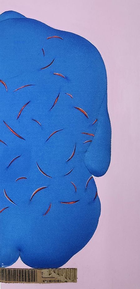 작품 속에서 특히 두드러지는 것은 ‘상처와 틈’에 대한 철학적 사유다. 김영혜의 화면 안에서 상처와 흉터는 단순한 결핍이나 손상의 흔적이 아니다. 그것은 서로 다른 존재들이 맞닿는 접점이자, 새로운 무늬와 지형을 만들어내는 생성의 자리다. 작가는 섬유 특유의 유연함과 바느질의 반복적 행위를 통해 이러한 경계의 흔들림과 관계의 생성을 섬세하게 포착해낸다.