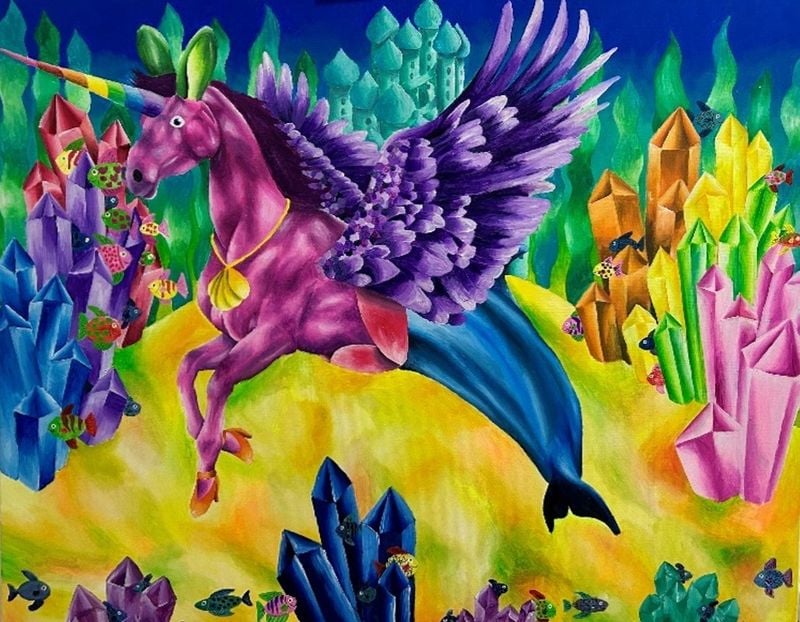 권라빈은 환상적인 색채와 형상을 통해 현실과 상상의 경계를 넘나드는 초현실적 세계를 구축한다. 대담한 색조와 비현실적 이미지의 결합은 감상자를 화면 안으로 깊이 끌어들이며, 상상과 내면의 정서가 교차하는 시각적 공간을 형성한다.