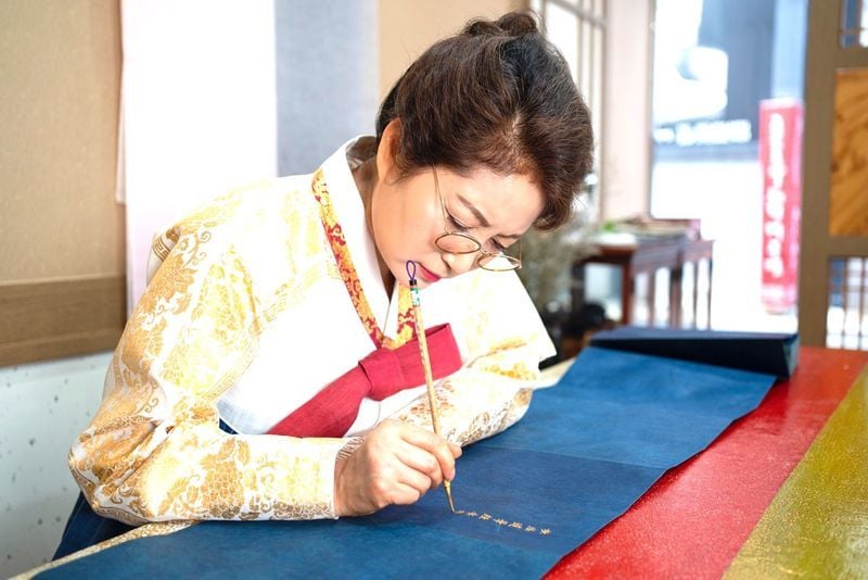 이번에 프랑스 측에서 판매 및 소장이 확정된 작품은 혜화 이순자 명인의 대표작 ‘관음도’로, 200×98cm 크기에 고려장지와 순금을 사용한 작품이다. 전통 재료와 섬세한 금선 표현, 깊이 있는 정신성을 담아낸 이 작품은 한국 전통미술의 정수를 보여주는 대표작으로 평가받고 있다.