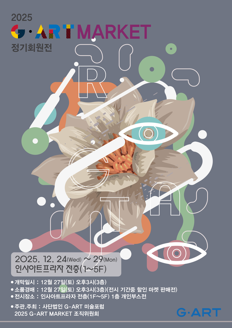사단법인 G-ART미술포럼과 2025. G-ART MARKET 조직위원회는 오는 12월 24일(수)부터 29일(월)까지 서울 종로구 인사동에 위치한 인사아트프라자 전관(1F~5F)에서 ‘2025. G-ART MARKET 展’을 개최한다.